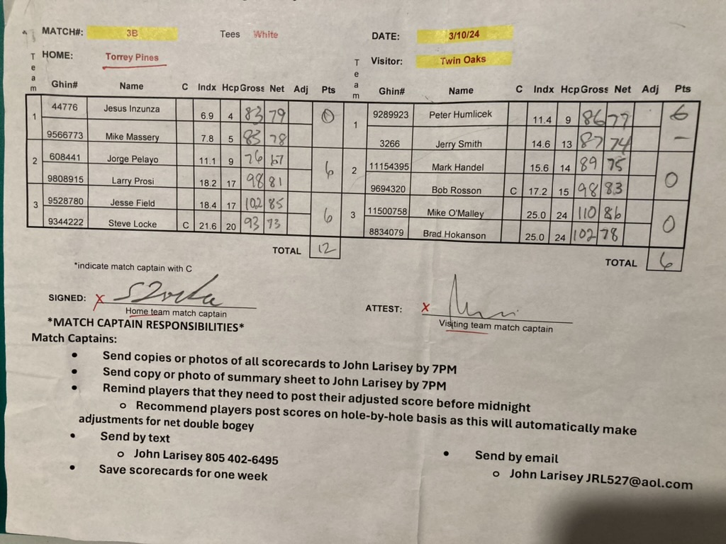 ‹ Match 03A Home vs Torrey Pines Win 11-7