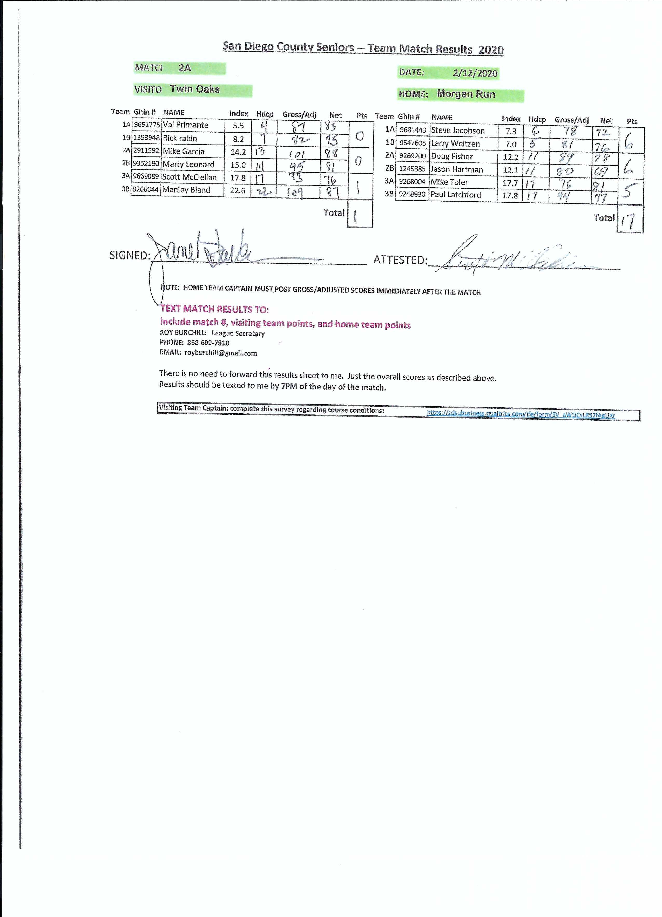 Run over at Morgan Run. Not too many highlights today at Morgan Run. Greens were great, fairways were not. Maybe we can blame it on the 1 hour frost delay. Some close matches but in the end: