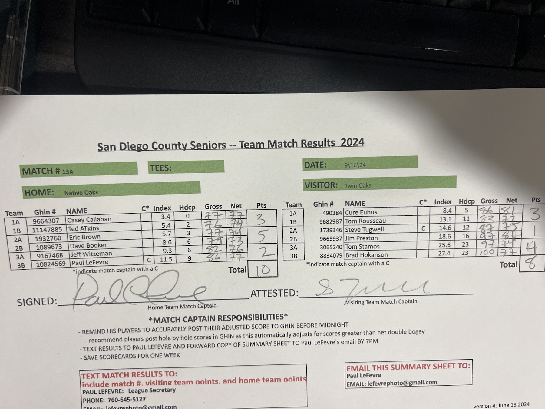 Match 13B Home vs Native Oaks